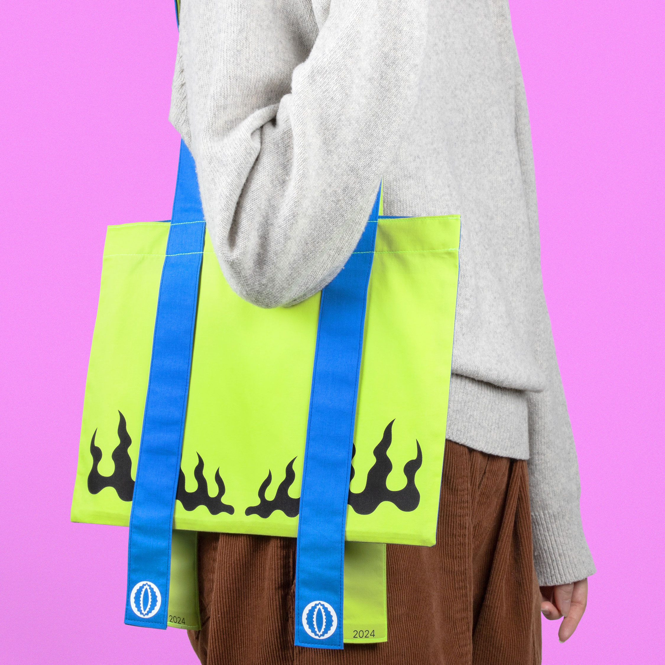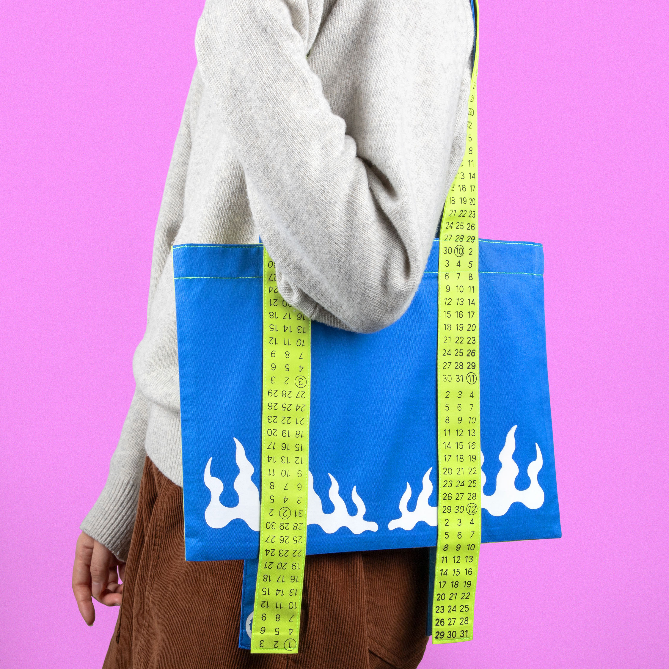 To welcome the Year of the Blue Dragon, we created a calendar bag that captures the spirit of 2024. Each bag was made entirely by hand — cutting the fabric, printing the graphics, and stitching it all together. One of the shoulder straps features a printed calendar and can be unbuttoned and rebuttoned as needed. We imagined the vibrant and refreshing energy of something that has long lain dormant finally leaping toward the sky, and we hope that strength and joy reach everyone in the year ahead. 🐉
