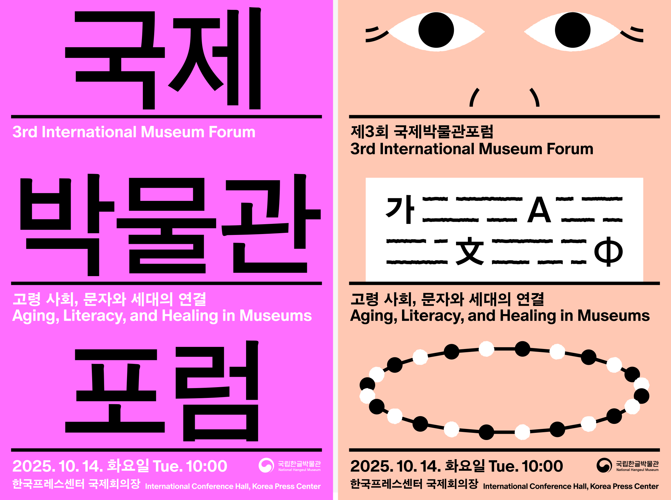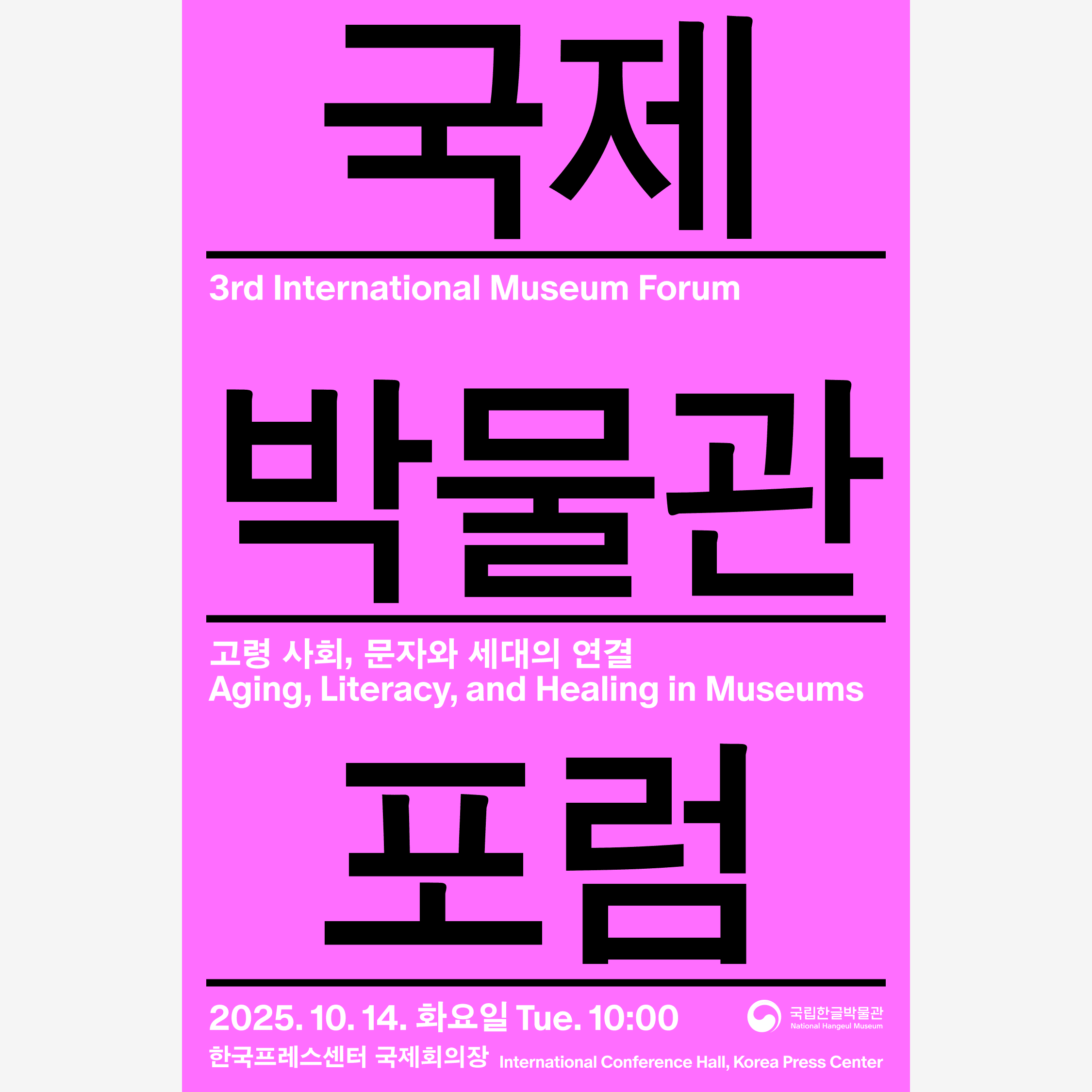 We designed the visual identity for the 3rd International Museum Forum, hosted by the National Hangeul Museum. The Forum serves as a platform where museums dedicated to script and language from around the world gather to discuss shared challenges. In 2025, the Forum focuses on the rapidly approaching super-aging society, exploring the significance of literacy and the evolving role of museums. BOWYER translated the Forum’s themes — “super-aging society” and “literacy” — into a poster that makes these issues visually legible. The core keywords, elderly–aging society, script–museum, and forum–connection, are rendered as three distinct illustrations, with the title placed prominently to ensure immediate readability. 👵🏻✒️🌐