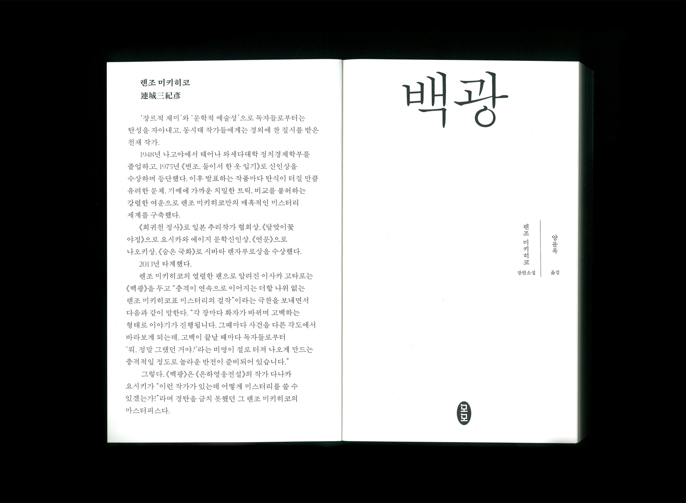 일본 미스테리 문학의 거장 렌조 미키히코의 소설 『백광』의 단행본을 디자인했습니다. 아름다운 풍경 속에는 때로는 잔인한 진실이 있기도 합니다. 🎇