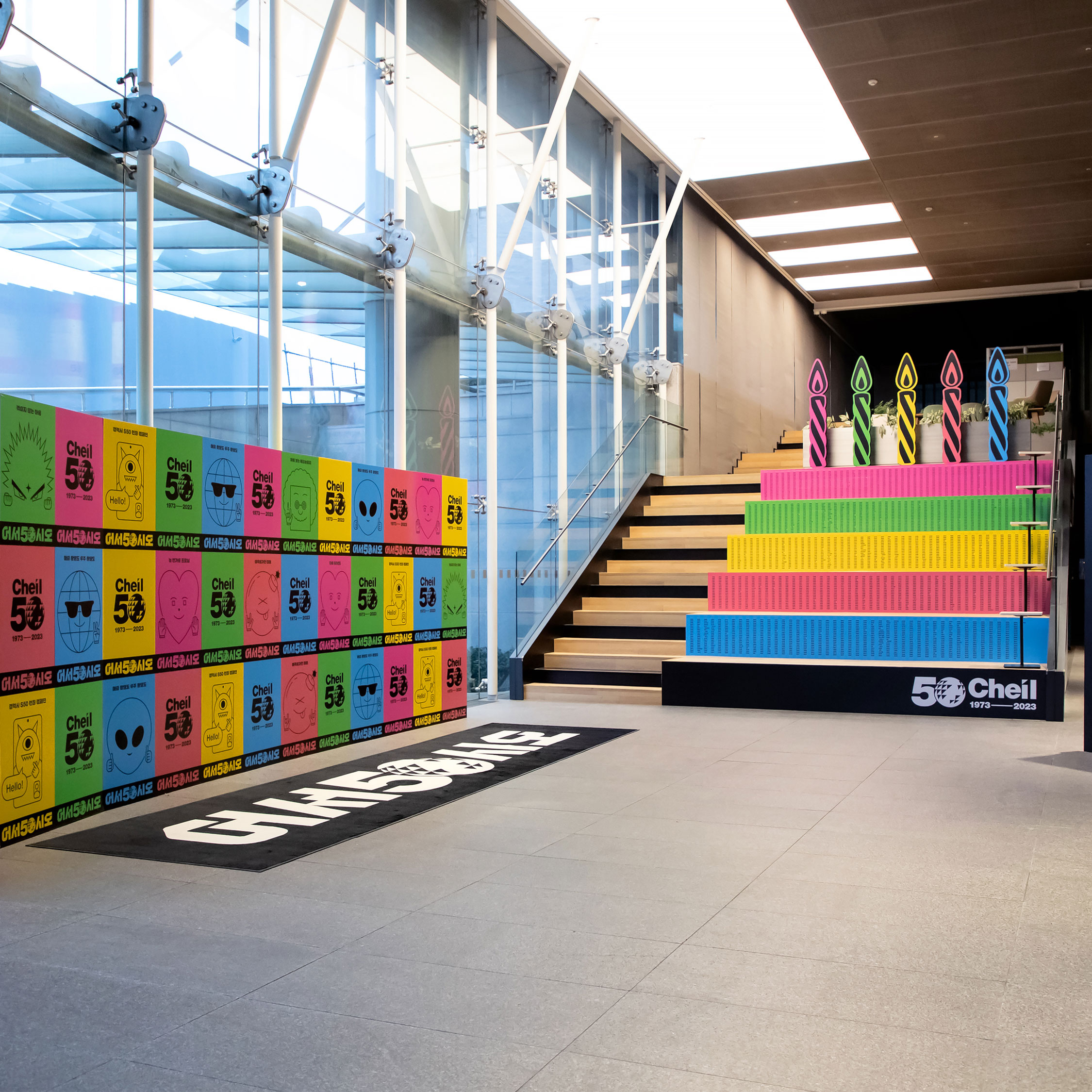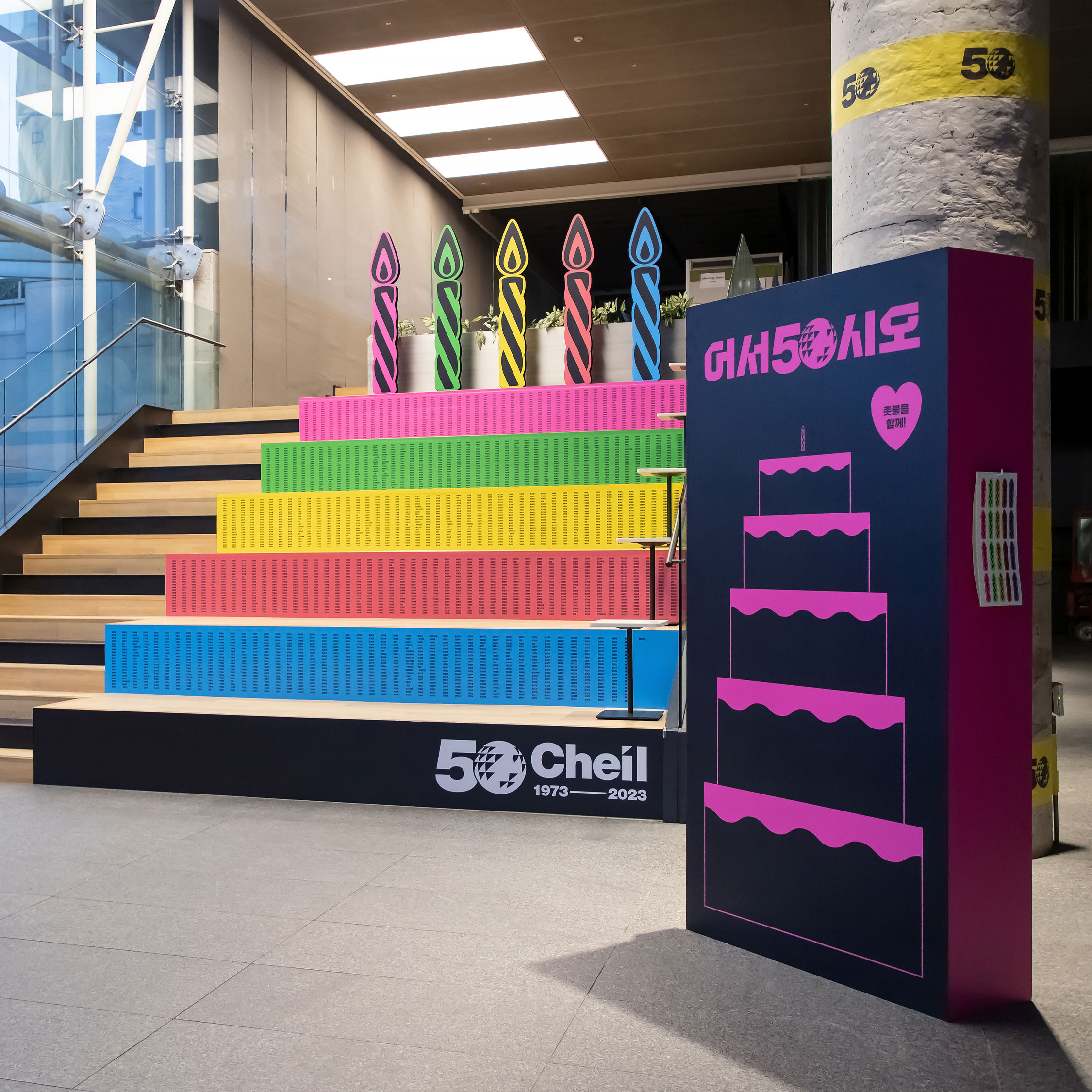 We designed the visual identity for Eoseo 50sio, a campaign celebrating the 50th anniversary of Cheil Worldwide. The phrase Eoseo 50sio is a playful wordplay in Korean — it combines “Welcome” (Eoseo osipsio) with the number 50, greeting both the past and the next 50 years with wit and energy. Through lively character illustrations, the campaign conveys a cheerful tribute to the past five decades and Cheil’s bold, imaginative spirit for the next. A future so ambitious, it might just shoot for the stars — Eoseo 50sio! 🌈