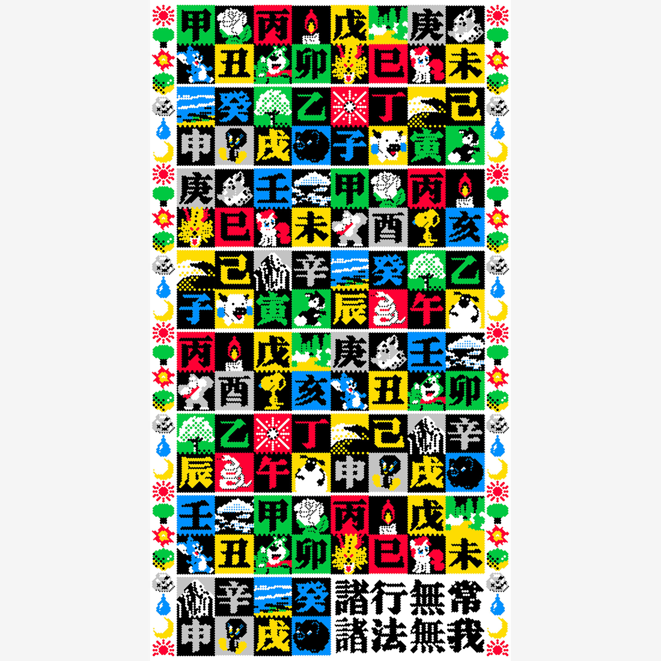 Based on these ideas, ancient people derived ten kinds of energy from the sky and twelve kinds of energy from the earth, and the energy of the sky and the earth was combined to create the sexagenary cycle. The cycle was a framework for understanding the flow of time in the Eastern world until the introduction of the Western calendar. Furthermore, people determined the fate of humans living in the flow of time through the sexagenary cycle. The fate of humans, which is understood through the sexagenary cycle, is not fixed, but changes as the components that make up the destiny interact with one another. The sixty terms — which starts with gapja (甲子, a mouse under a tree) and ends with gyehae (癸亥, a pig under the clouds) — are like a fabric of fates woven vertically and horizontally with the cycle in which all living beings born, grow, bear fruit, and die. This work looks at life intently through the process of weaving the fabric step by step.