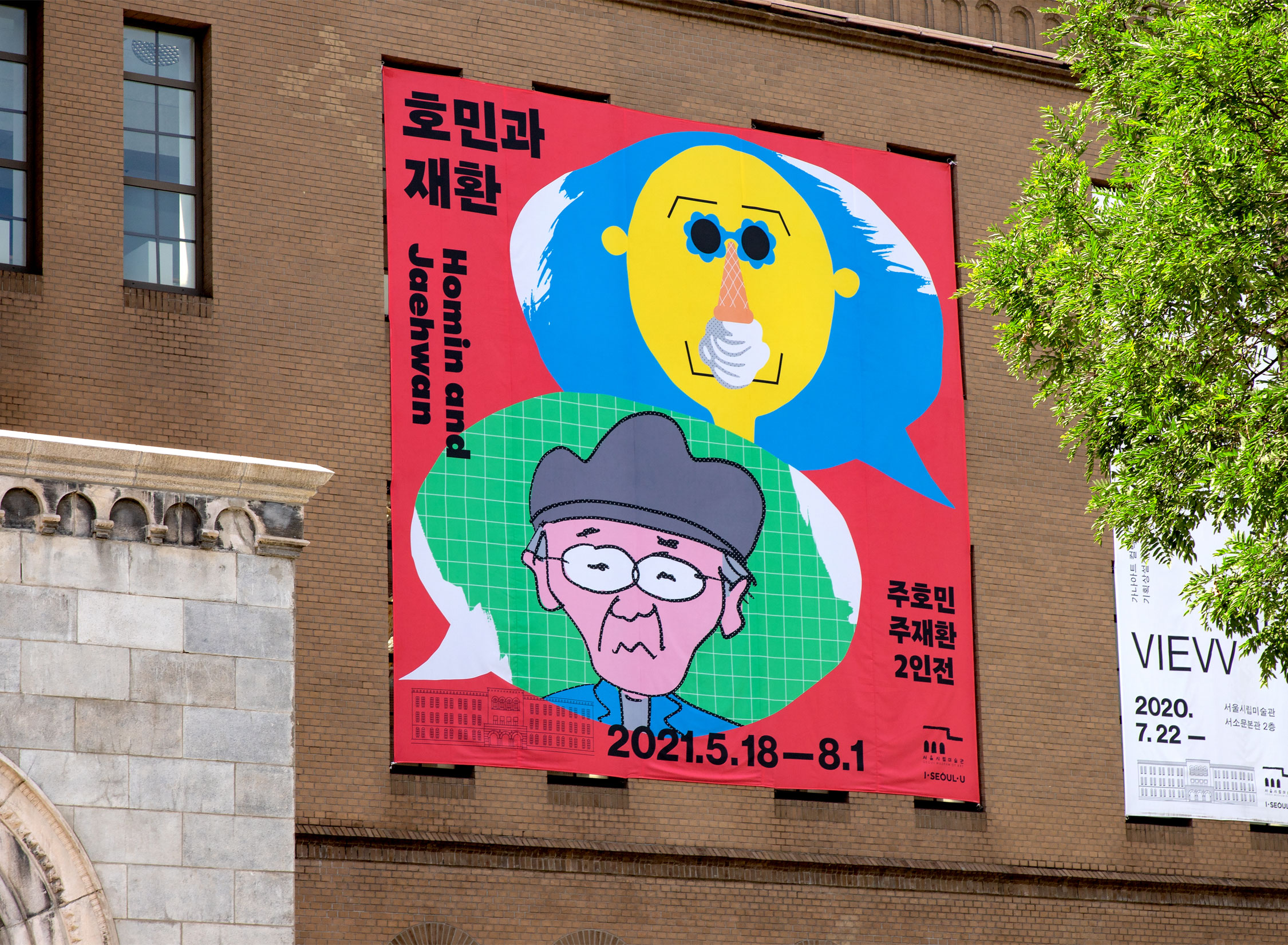 We designed the visual identity and catalogue for the Seoul Museum of Art exhibition Homin and Jaehwan. This two-person show features artist Joo Jaehwan, known for his humorous yet sharp perspectives on major issues in modern Korean history, and his son Joo Homin, widely recognized for his webtoons interpreting the boundary between life and death through Korean mythology. BOWYER visualized this rare father-and-son exhibition with a direct and intuitive concept: a portrait of the father drawn by the son, and a portrait of the son drawn by the father. 😎🥸