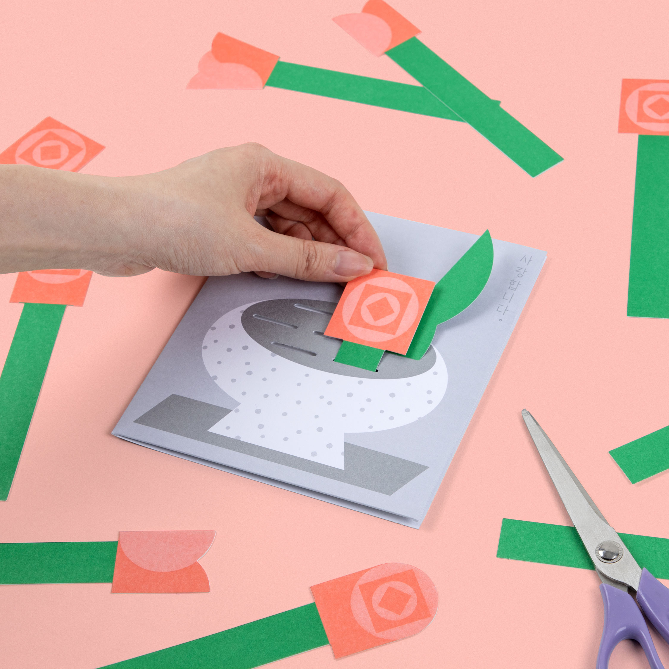 We created a card that lets you arrange flowers while thinking of someone you love. The LOVE & pieces series is a set of DIY cards that allows you to create your own floral arrangement using paper flowers. We often send flowers to express our feelings to those we care about—perhaps because their beauty and vitality resemble the emotions we hold inside. With the LOVE & pieces kit, craft a beautiful arrangement for someone you love. 💐