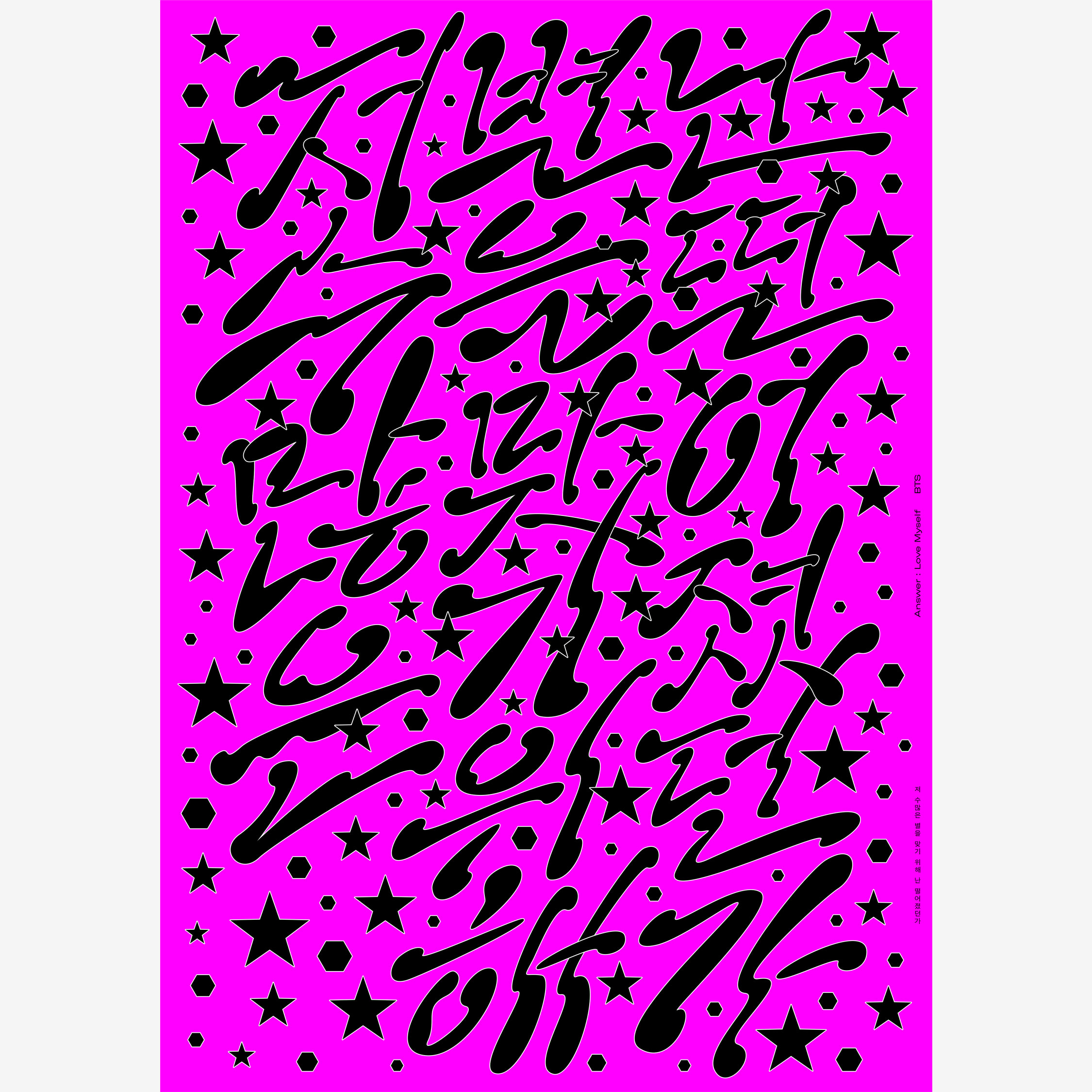 한국타이포그라피학회 전시 15 «노래하는 말, 노래하는 글»에 참여했습니다. 황상준은 f(x)의 “4 walls”, 이화영은 BTS의 “Answer: Love Myself”의 가사로 포스터를 만들었습니다. 🌬️