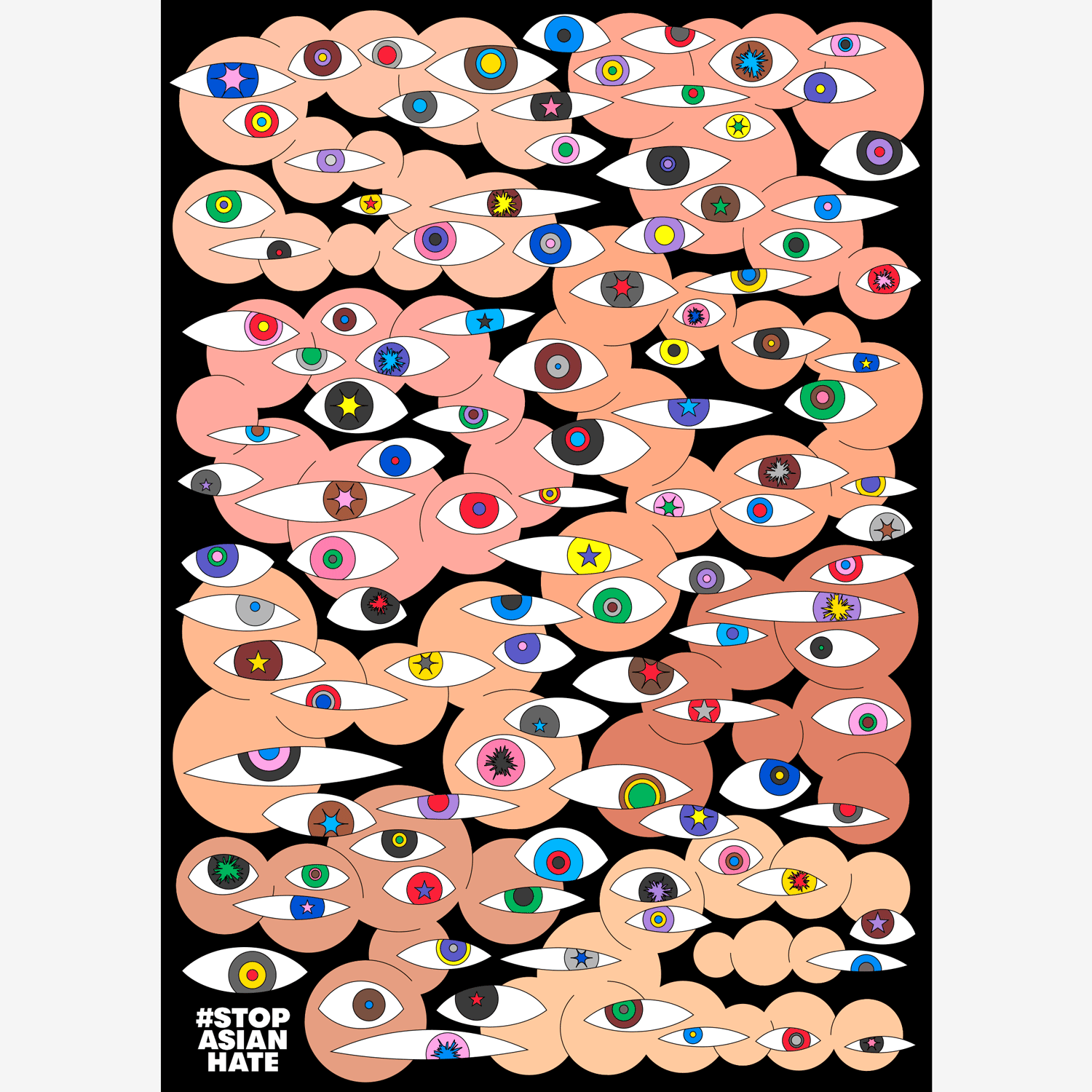 On March 16, 2021, in Atlanta, Georgia, Robert Aaron Long opened fire at massage parlors and spas, killing eight people and injuring one. Six of the eight victims were Asian. During the COVID-19 pandemic, a wave of hate crimes targeting Asians prompted the spread of the “Stop Asian Hate” hashtag movement in defiance of such prejudice. In solidarity, Korean graphic designers created and exhibited posters opposing not only anti-Asian hate but all forms of racial discrimination. BOWYER contributed a poster depicting a variety of human eyes, playfully resisting one of the anti-Asian hate gestures — the “slanted eyes.” 👁️