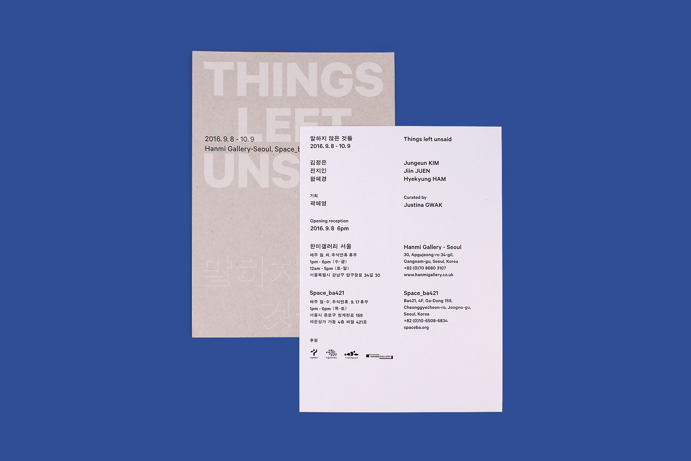 전시 ‘말하지 않은 것들’ 도록 및 엽서 디자인